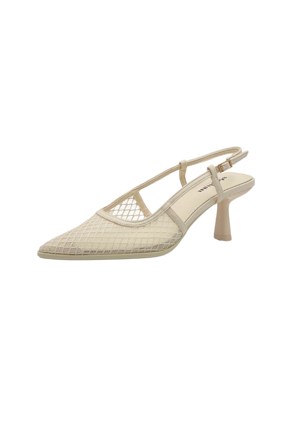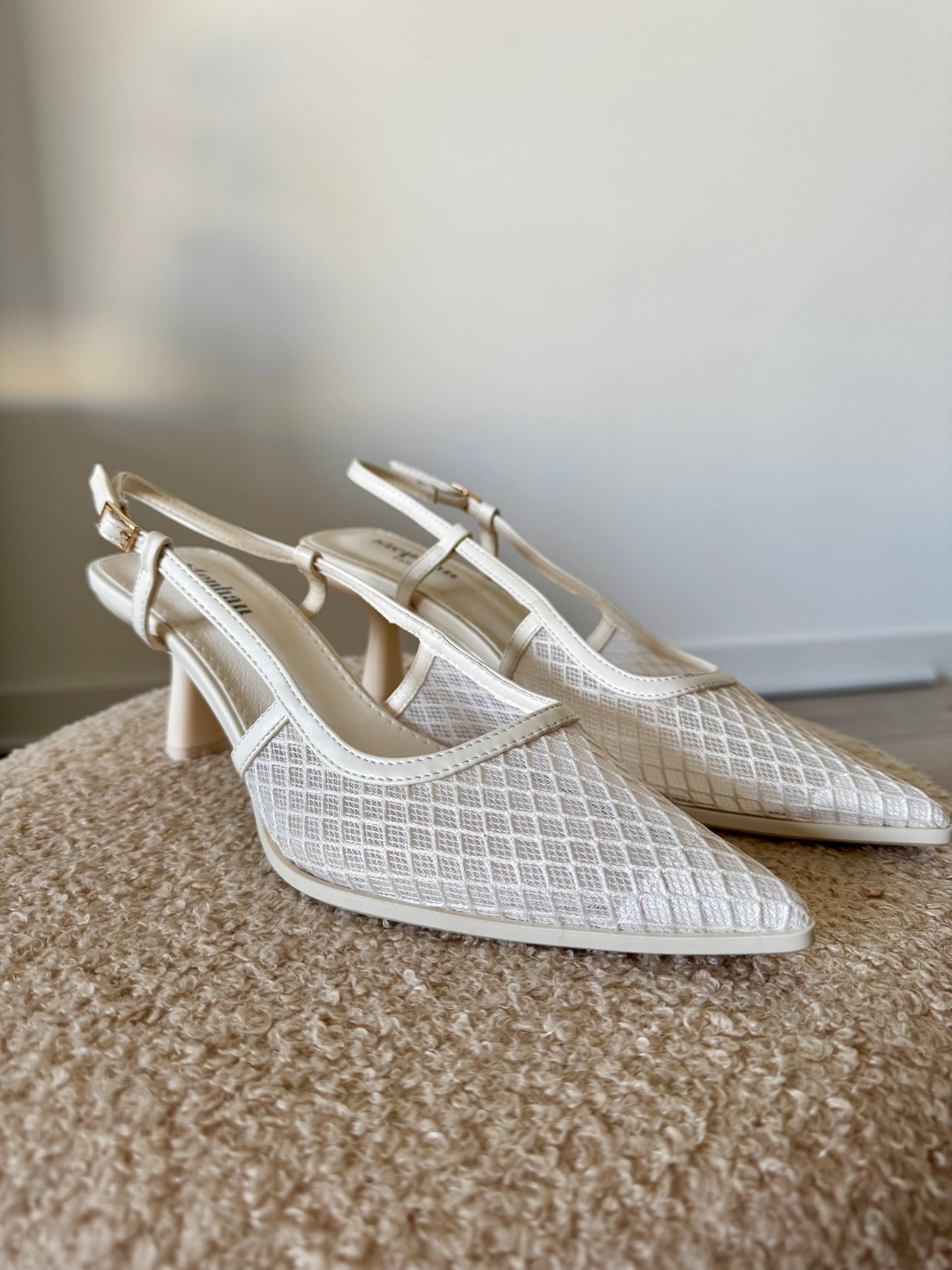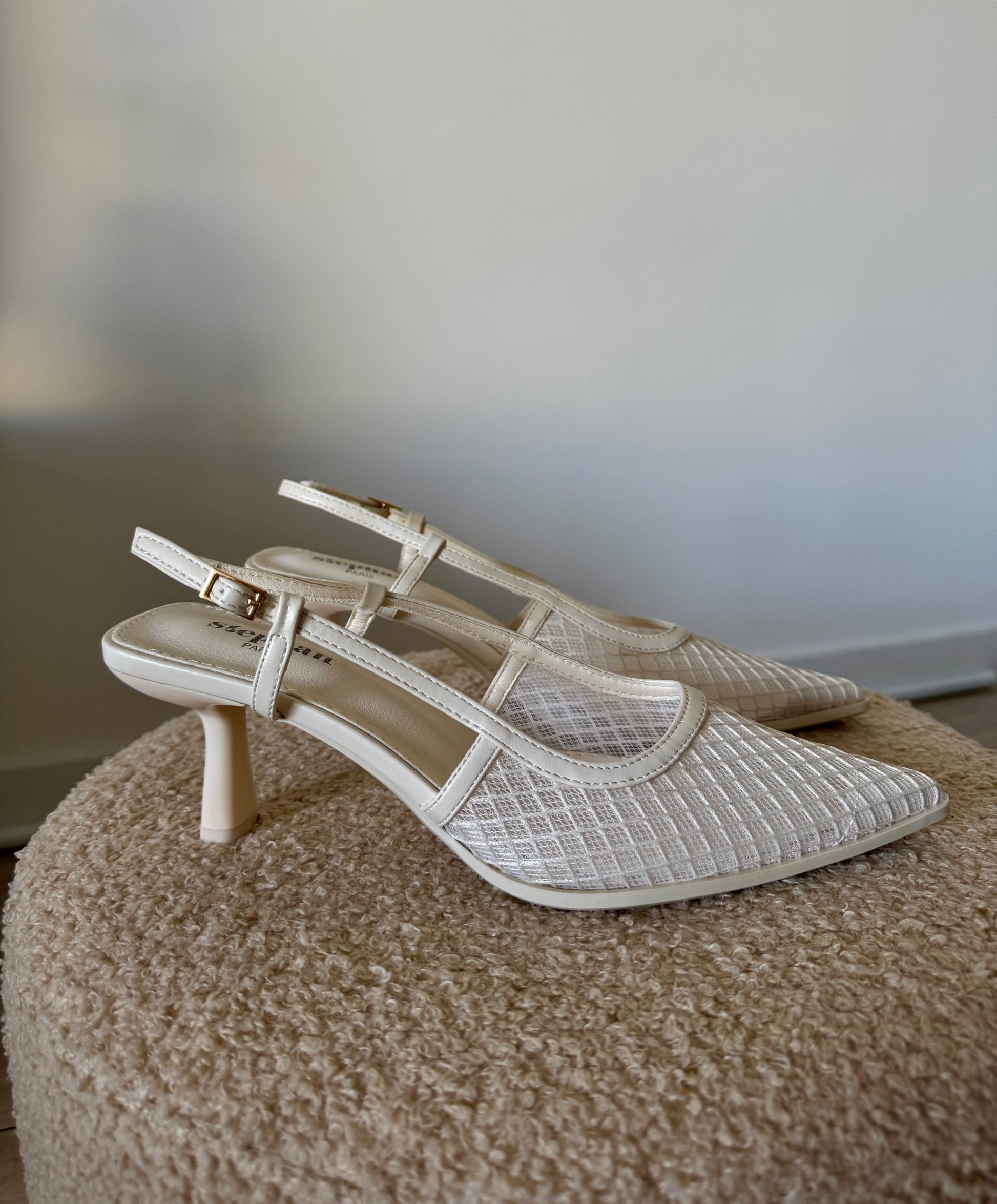 Apportez une touche de raffinement à vos tenues avec ces escarpins kitten heels blancs. Dotés d’un design moderne avec des empiècements en transparence, ils allient légèreté visuelle et sophistication. Leur bout pointu structure la silhouette, tandis que le petit talon de 5 cm offre une élégance discrète sans compromettre le confort. La bride réglable à la cheville assure un maintien parfait tout au long de la journée.
